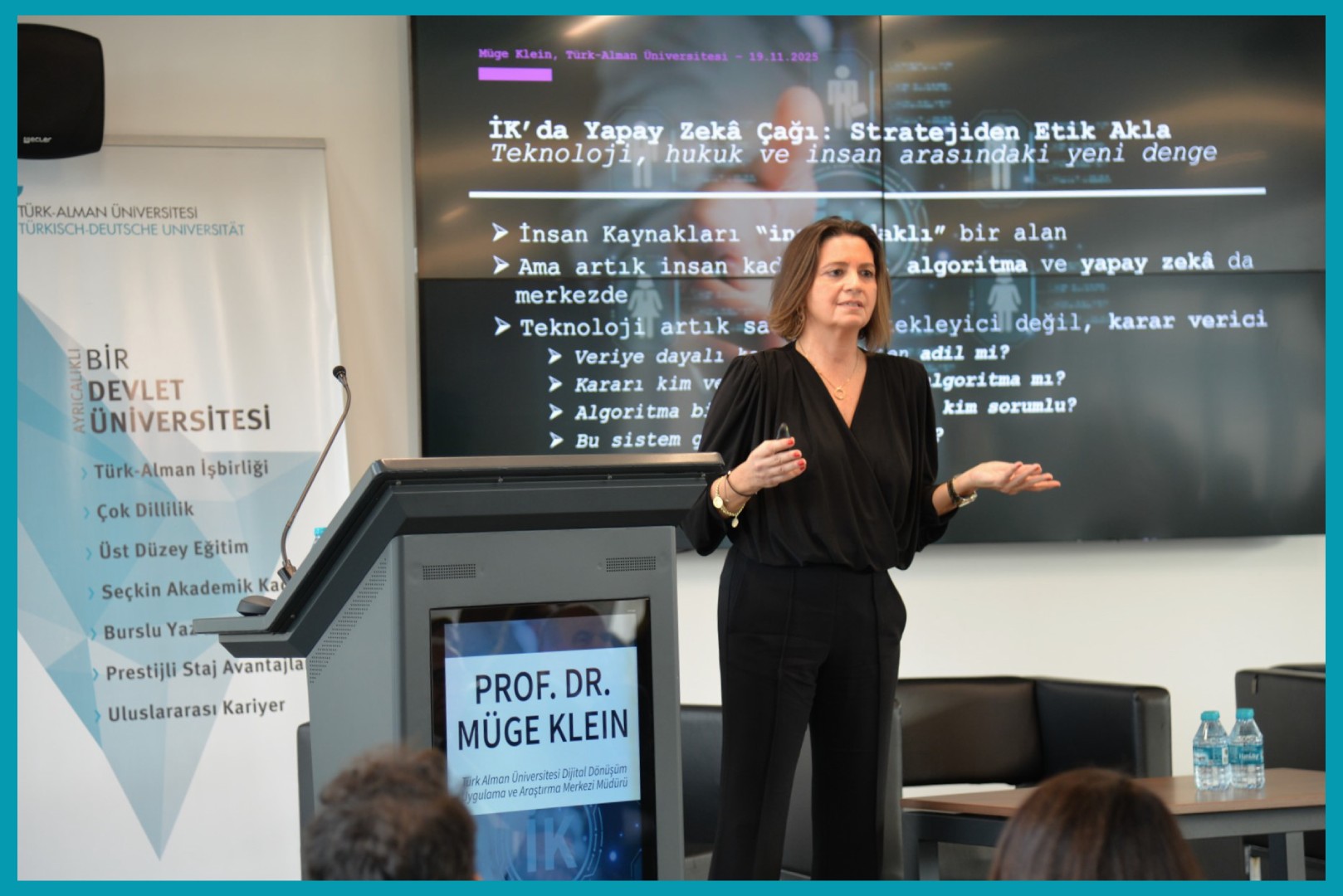 Üniversitemiz Dijital Dönüşüm Uygulama ve Araştırma Merkezi (TAÜ-DDUAM) ile Alman-Türk Ticaret ve Sanayi Odası (AHK Türkiye) İnsan Kaynakları (İK) Çalışma Grubu iş birliğinde düzenlenen “İK’de Yapay Zekâ Çağı – II. İnsan Kaynakları Zirvesi”, 19 Kasım 2025 tarihinde Yabancı Diller Yüksekokulu Konferans Salonu’nda gerçekleştirildi.