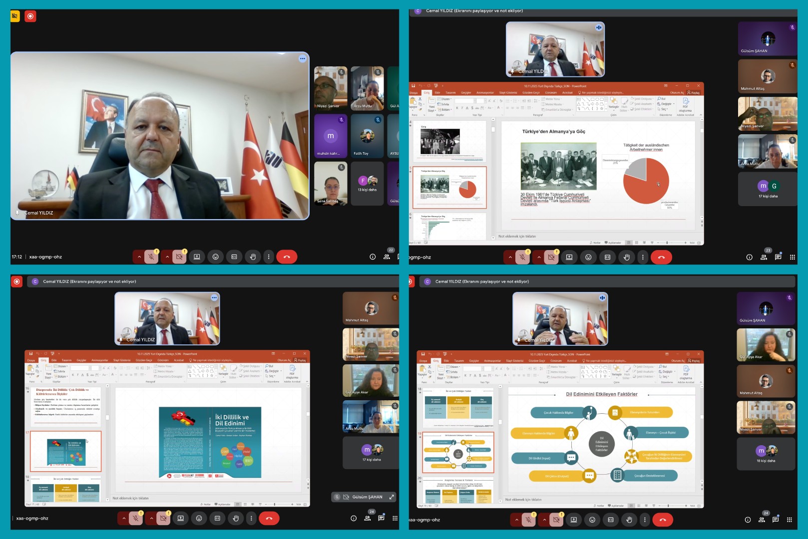 Rektörümüz Prof. Dr. Cemal Yıldız, “Türkçenin Yabancı Dil Olarak ve Yurt Dışındaki Türk Çocuklarına Ana Dili Olarak Öğretiminin Önemi” başlıklı dersinde, Türkçenin öğretilmesinin yalnızca dilsel bir süreç olmadığını, aynı zamanda kültürel kimliğin korunması, iki dilliliğin gelişimi ve kültürler arası bağların güçlenmesi açısından da büyük önem taşıdığını ifade etti. Türkçenin doğru ve bilinçli biçimde öğretilmesinin, çocukların aileleriyle ve kültürel kökleriyle bağlarını kuvvetlendirdiğini, bunun da aidiyet duygusunu pekiştirerek kültürler arası köprülerin kurulmasına katkı sağladığını belirtti.