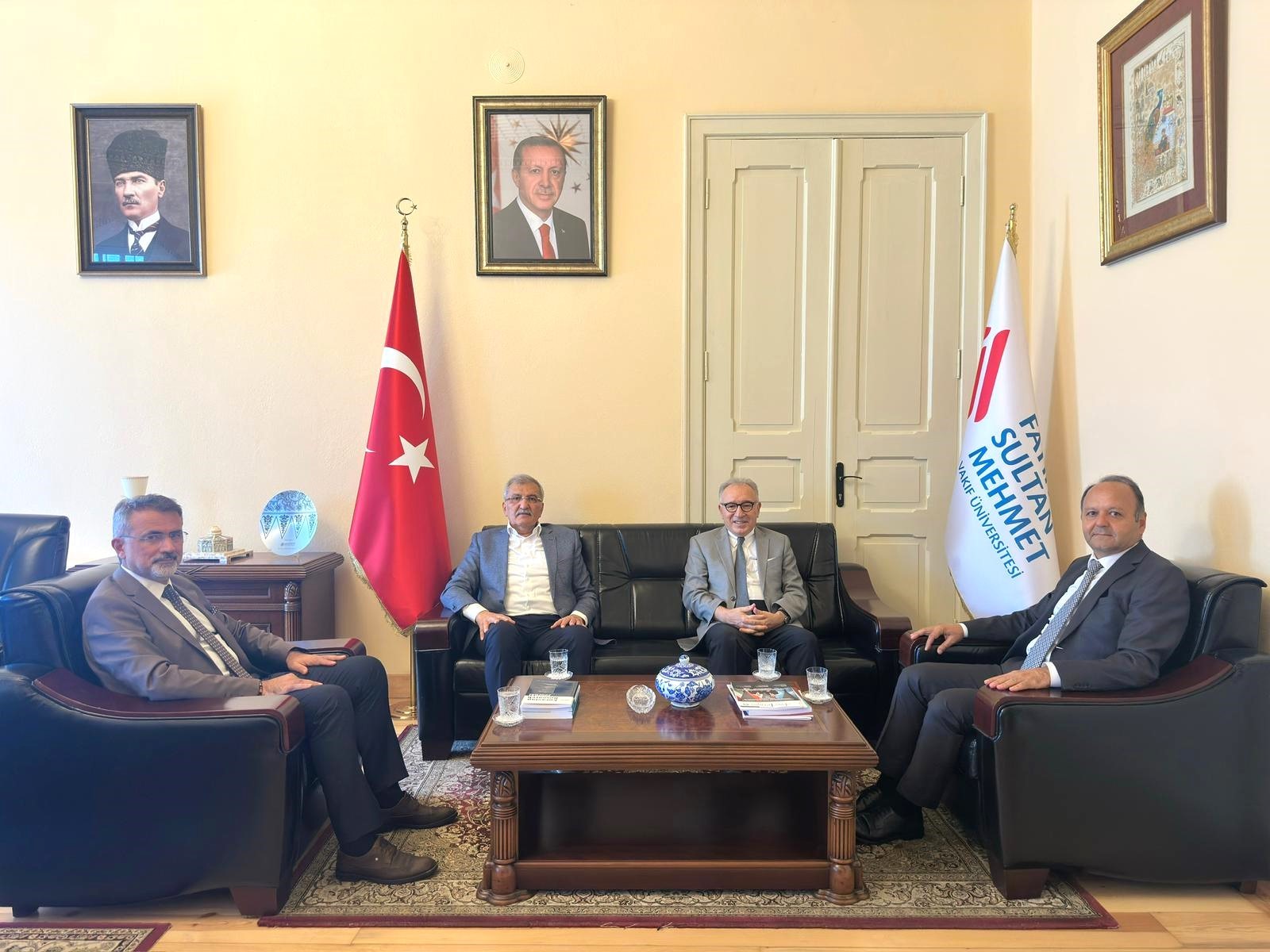 Rektörümüz Prof. Dr. Cemal Yıldız ve Genel Koordinatörümüz Prof. Dr. Ferit Küçükay, 24 Eylül 2025 tarihinde Fatih Sultan Mehmet Vakıf Üniversitesi Rektörü Prof. Dr. Nevzat Şimşek’i makamında ziyaret etti.