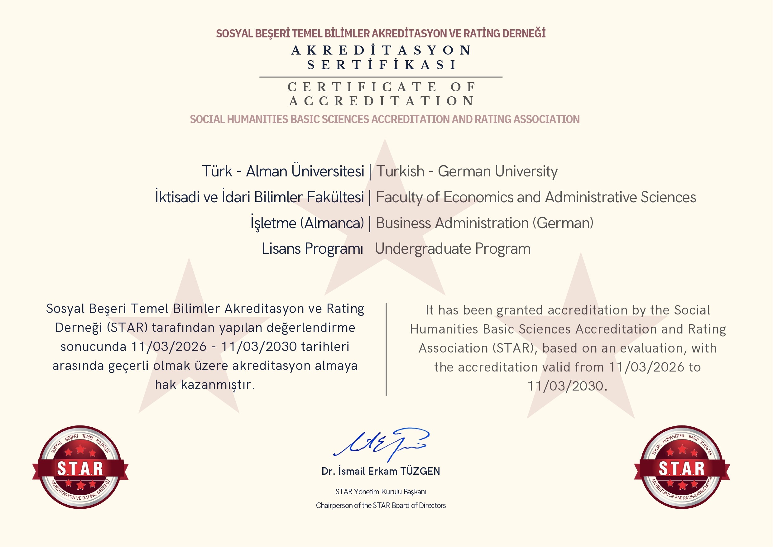 Unser Rektor, Prof. Dr. Cemal Yıldız gratulierte unserem akademischen und administrativen Personal, das am Akkreditierungsprozess beteiligt war, und brachte seine Zufriedenheit über diesen Erfolg zum Ausdruck. Er betonte, dass dieser Erfolg ein konkreter Beleg für die Vision unserer Universität ist, Bildung auf internationalem Niveau anzubieten, sowie für die große Bedeutung, die sie den Qualitätssicherungsprozessen beimisst.