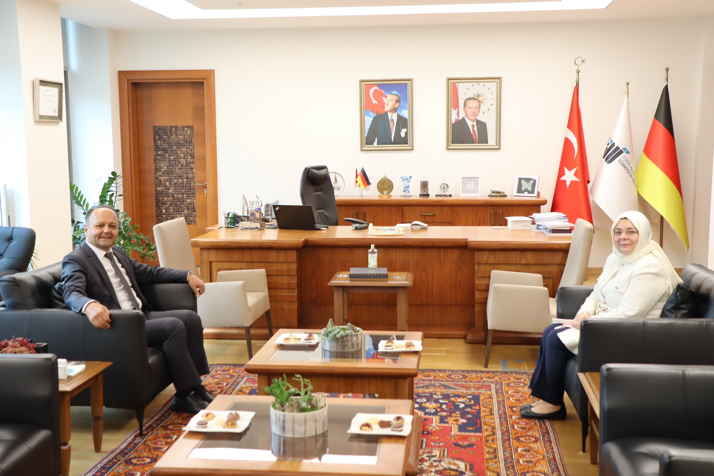 Gerçekleşen nazik ziyarette, Üniversitemizin akademik yapısı, Türk-Alman iş birliği çerçevesinde yürütülen çalışmalar ve gelecekteki ortak projeler hakkında fikir teatisinde bulunuldu. Rektörümüz Prof. Dr. Cemal Yıldız, Üniversitemizin misyonu ve hedefleri hakkında kapsamlı bilgiler vererek yükseköğretimde kalite odaklı ilerleyişin önemine değindi.