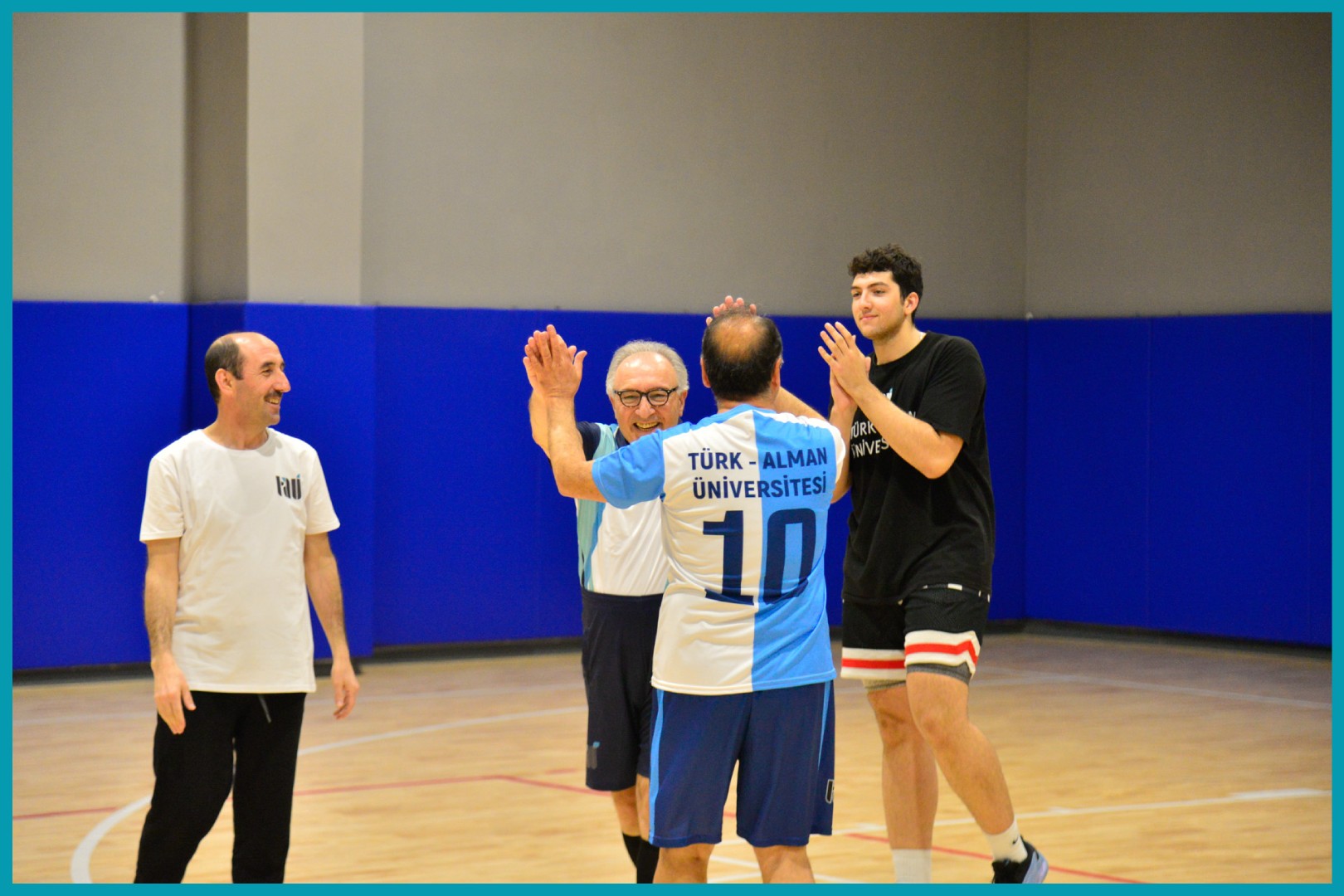 Karşılaşmanın ardından takımımızı tebrik ederek hatıra fotoğrafı çektiren Rektörümüz ve Genel Koordinatörümüz, spor faaliyetlerine verdikleri destek kapsamında Kadın Voleybol Takımımız ve Erkek Basketbol Takımımız ile birer antrenman maçı gerçekleştirdi.