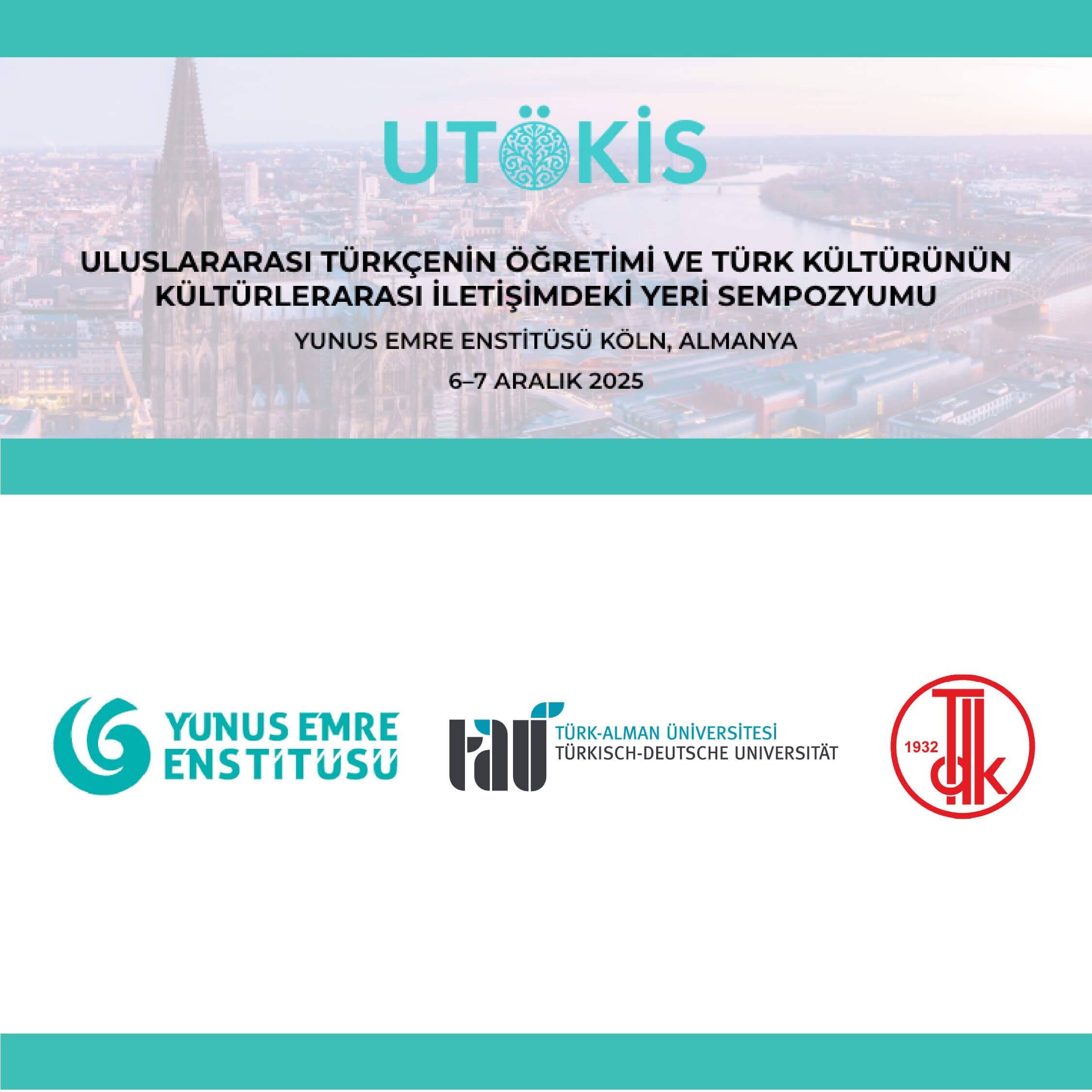 İçerik | Üniversitemiz, Yunus Emre Enstitüsü ve Türk Dil Kurumu iş birliğiyle düzenlenen "Uluslararası Türkçenin Öğretimi ve Türk Kültürünün Kültürlerarası İletişimdeki Yeri" başlıklı uluslararası sempozyum 6-7 Aralık 2025 tarihlerinde Yunus Emre Enstitüsü Köln, Almanya'da gerçekleştirilecektir. |